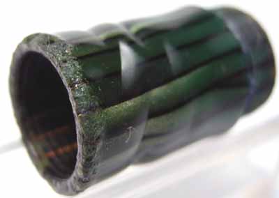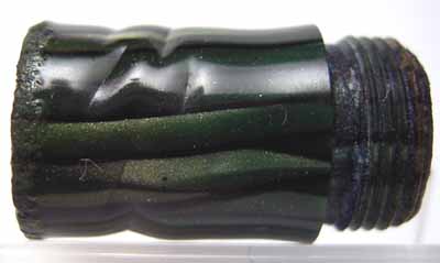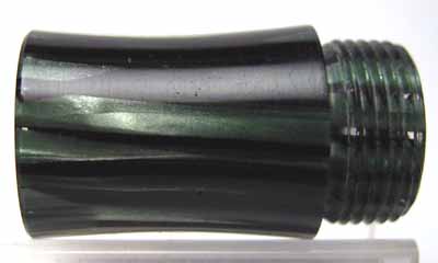 Es wurde dann notwendig ein neues Griffstück aus Grün gestreiften Celluloid anzufertigen, zum Glück steht ja in der Werkstatt eine Drehmaschine. Die entsprechenden Werkzeuge sind einmalig anzufertigen, bei der nächsten Reparatur hat man diese dann schon zur Hand.